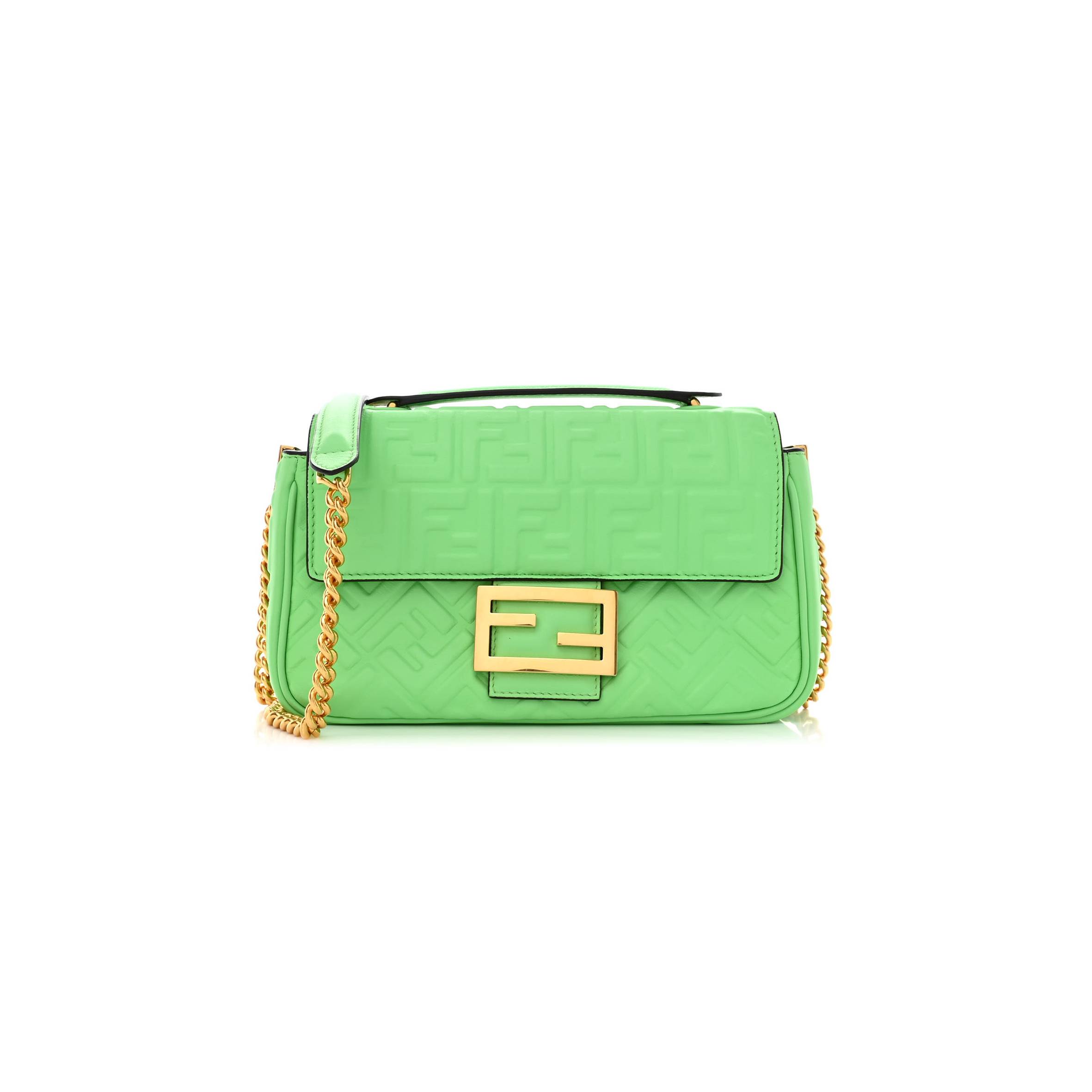 F**di NAPPA SMALL FF EMBOSSED MIDI CHAIN BAGUETTE EDAMAME (22*14*6cm) Master Quality