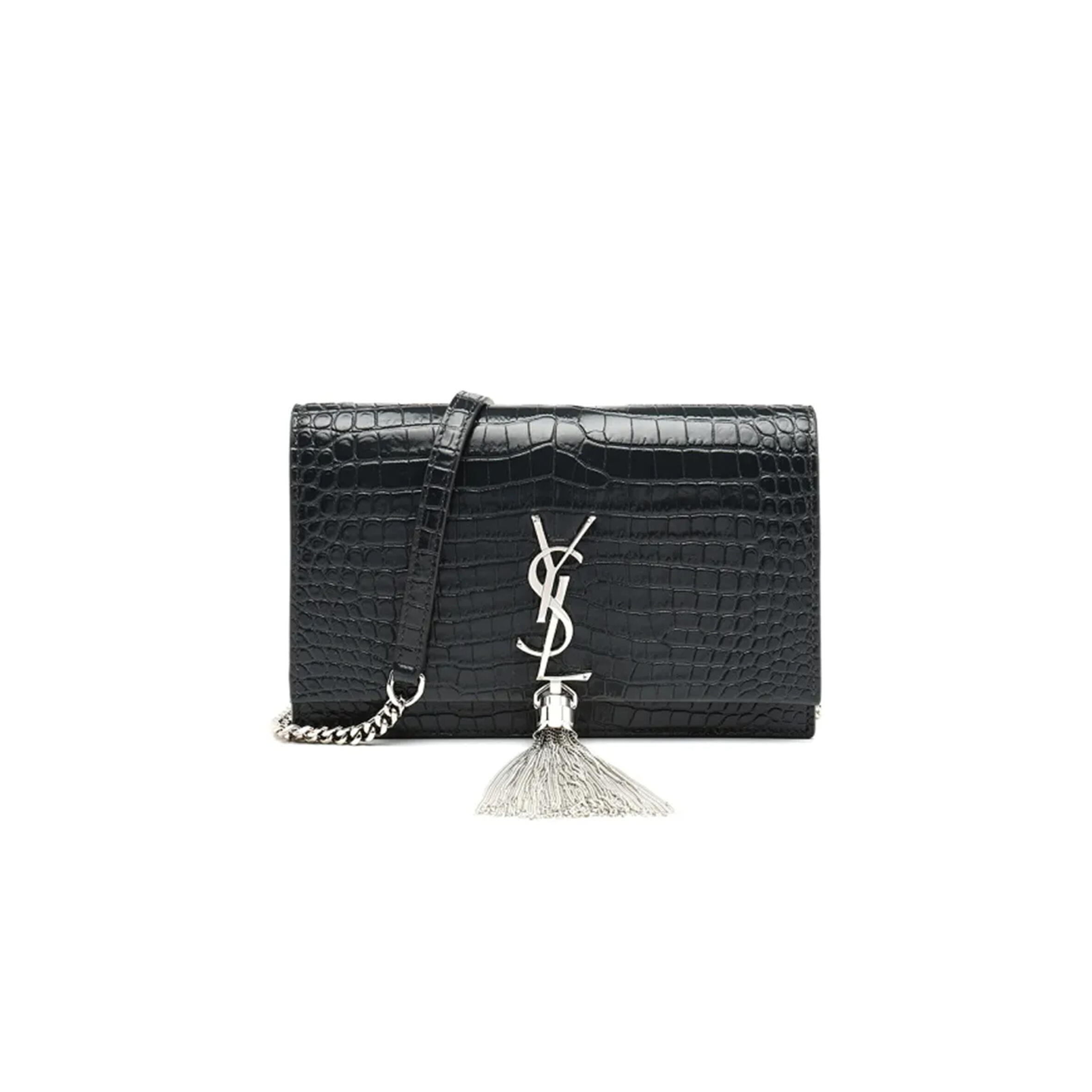 Y51 CASSANDRE CHAIN WALLET IN CROCODILE-EMBOSSED SHINY LEATHER 743364 (23*14*4cm) Master Quality