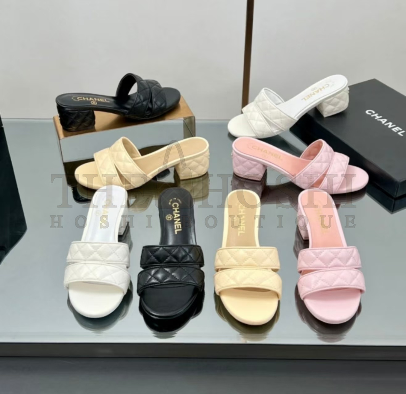 Ch**el CC 25 MID HEEL MULES BLACK SHEEPSKIN Master Quality