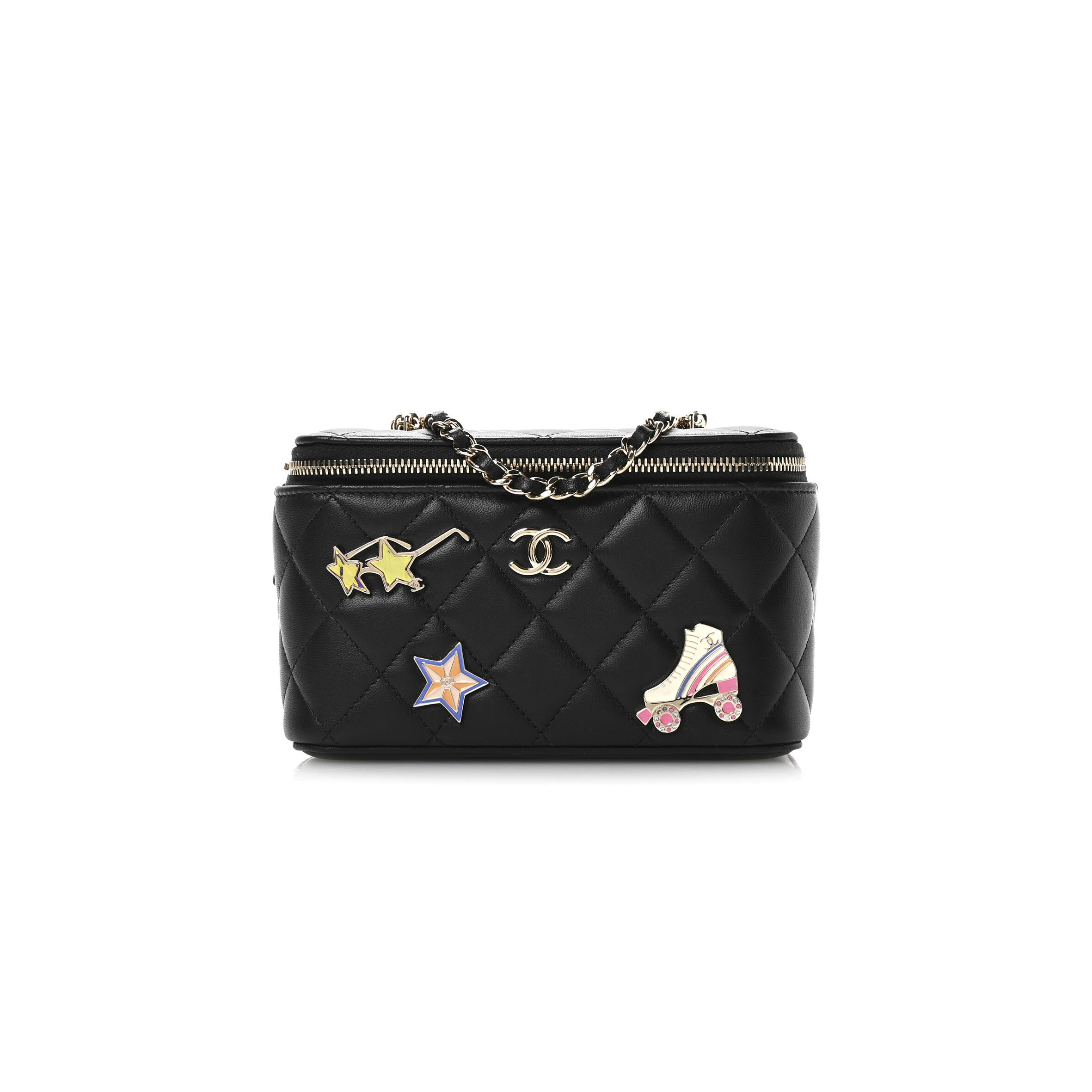 Ch**el LAMBSKIN QUILTED ROLLER SKATE SMALL VANITY CASE WITH CHAIN AP1341 (16*9.5*7.5cm) Master Quality