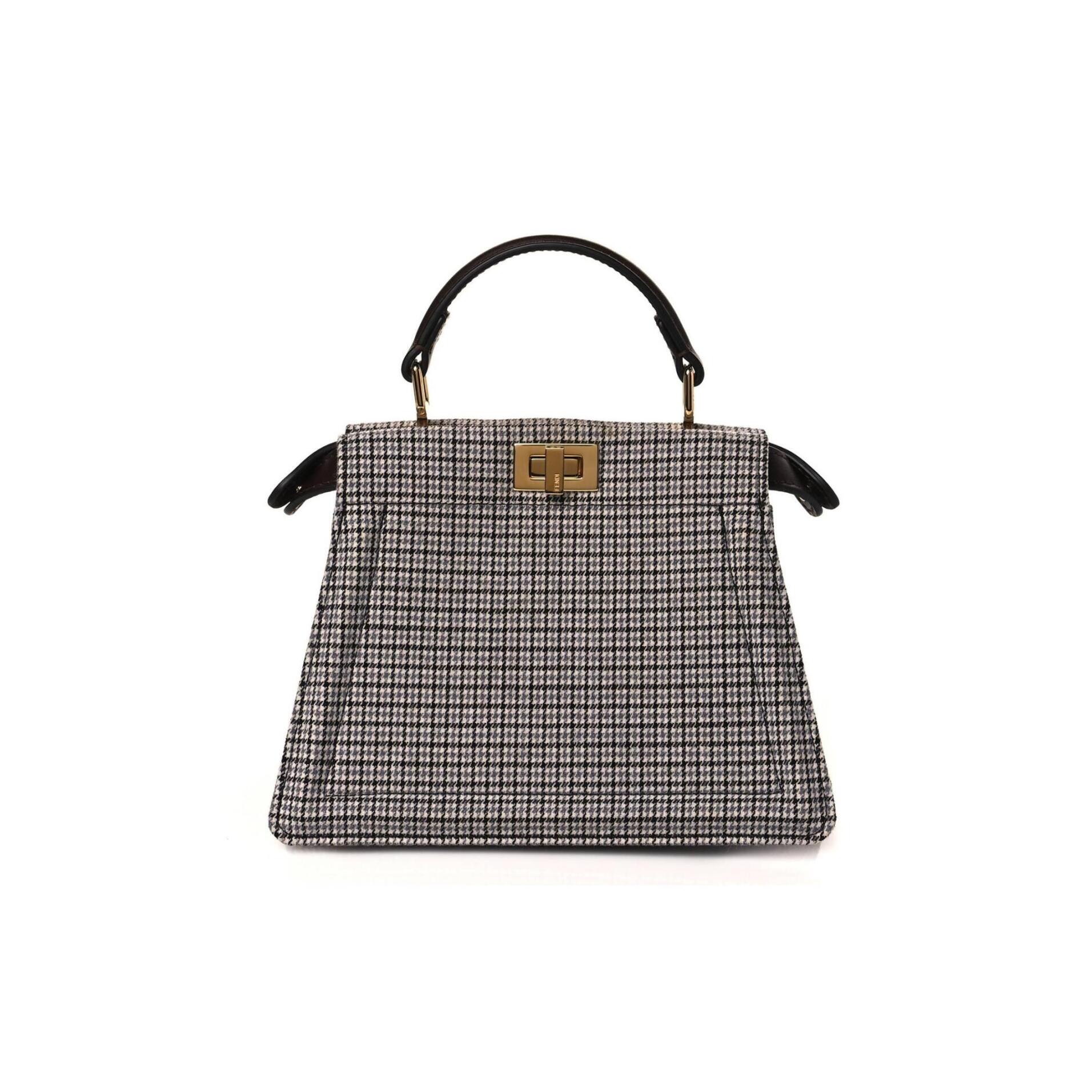 F**di WOOL FABRIC JACQUARD CUOIO HOUNDSTOOTH FF 1974 PETITE PEEKABOO I SEE U SATCHEL GREY BLACK (20*15*11cm) Master Quality
