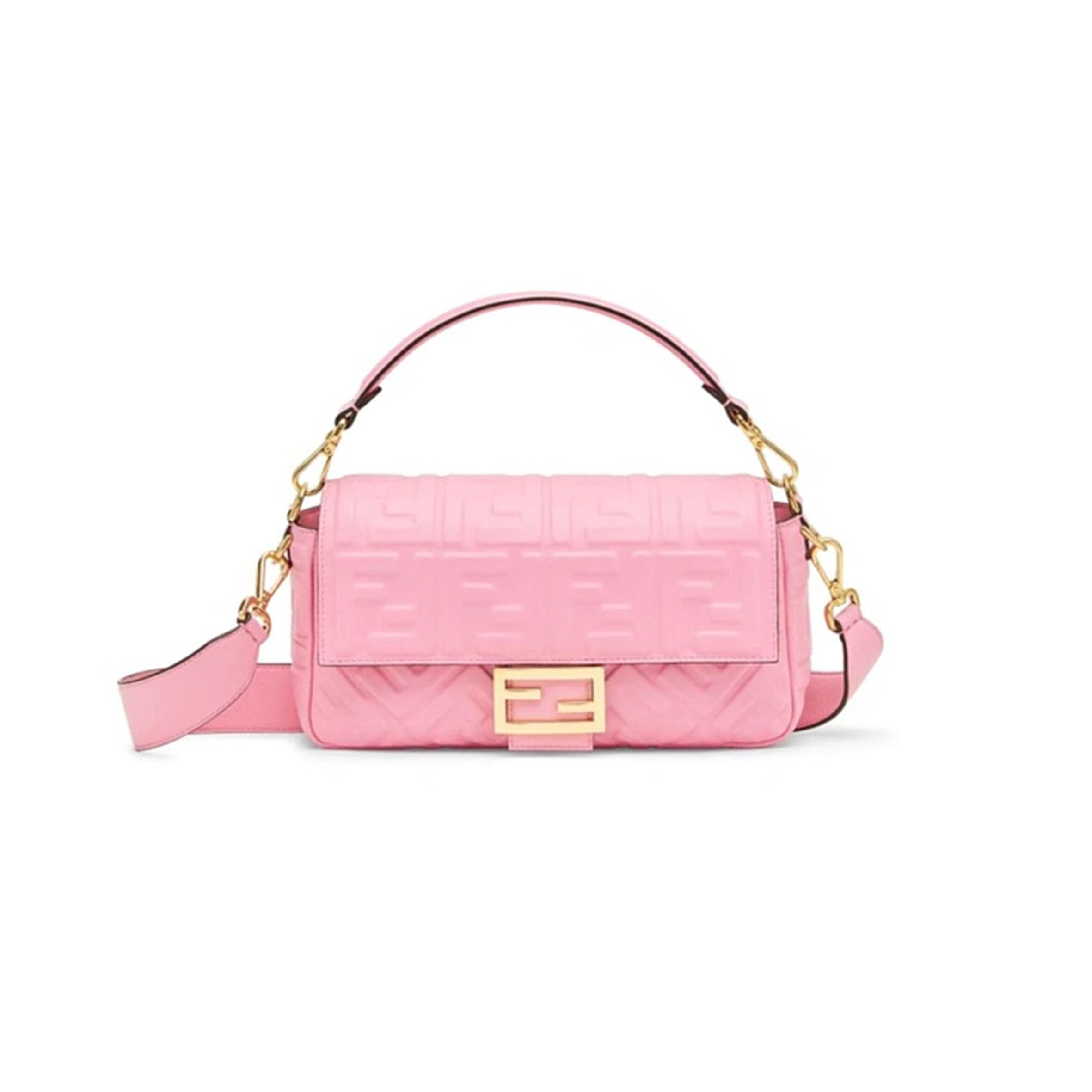 F**di CANVAS VITELLO KING EXTRA STRAP FF EMBROIDERED BAGUETTE BABY PINK (27*15*6cm) Master Quality